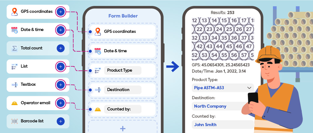 The Form Feature allows you to create and customize your Form by including important details about your counted objects and their results. It’s important to know that this feature is not only useful for exporting counting data to a CSV file, but it also facilitates the automatic addition of supplementary data to Forms, such as GPS coordinates, Volume of products, Total counts, and more.