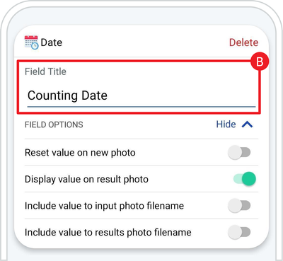 B. Complete the Field Title (e.g. Counting Date)