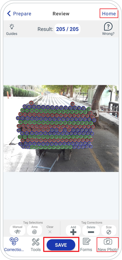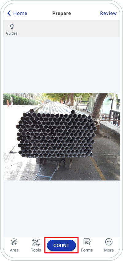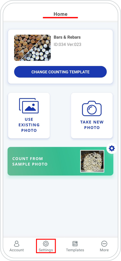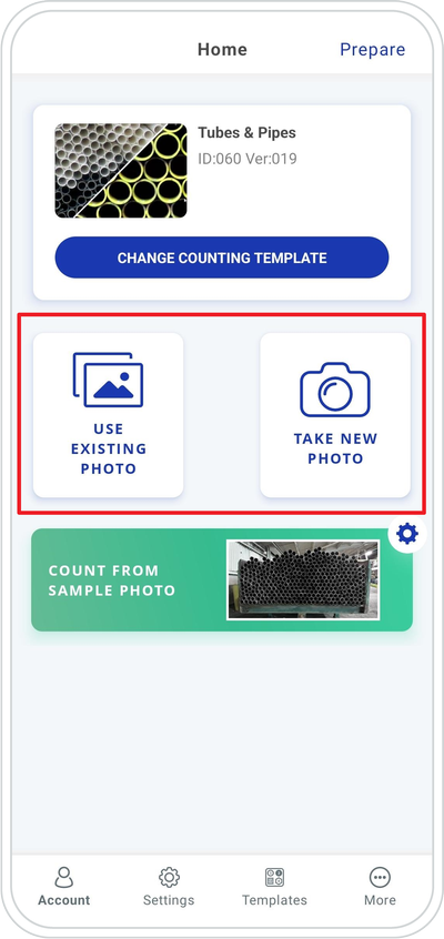 Home screen ➜ Use Existing Photo or Take New Photo ➜ Count ➜ Save Tap New Photo to take a new photo or Tap the Home button to select USE EXISTING PHOTO.