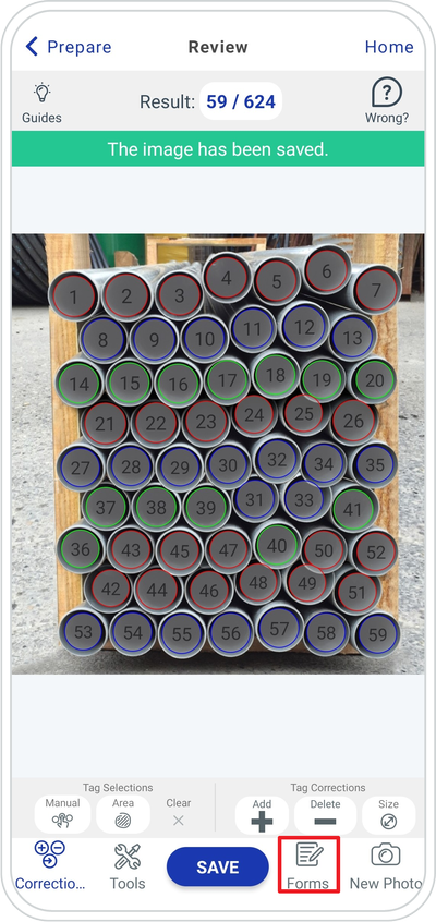After you repeted the process and Saved the last photo you want to count from, go to Forms.
