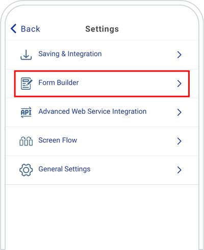 Home ScreenSettingsForm Builder ➜ Tap the EDIT button of the Form you want to return to.