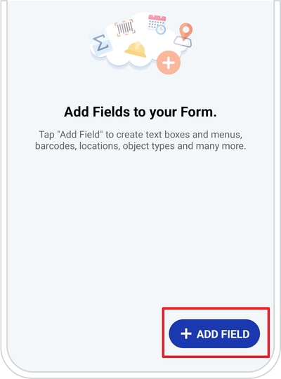 Scroll down to browse through the available Fields and tap the "+" button to add one in your Form.