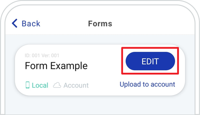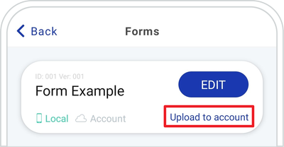 Home ScreenSettingsForm Builder ➜ Tap the Upload to account button ➜ You will receive a green message after uploading it succesfully.