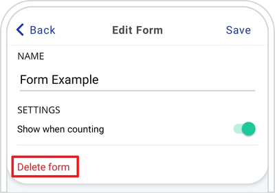 • To delete a Form, repeat the steps above to enter the Form you no longer want to use. Click on the Delete form red button at the top of the screen, under SETTINGS.