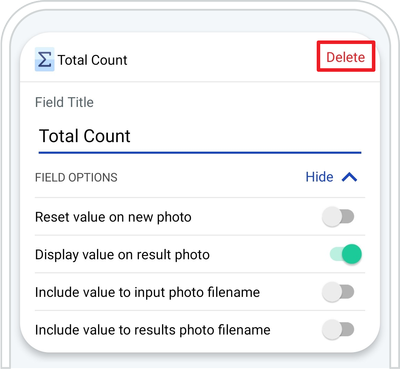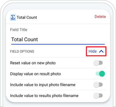 A. + ADD FIELD ➜ Tap the „+” button from Total Count