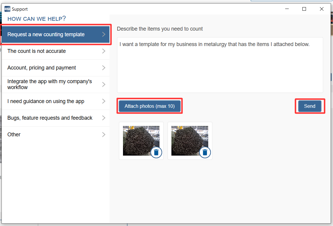 "Request a new counting template"