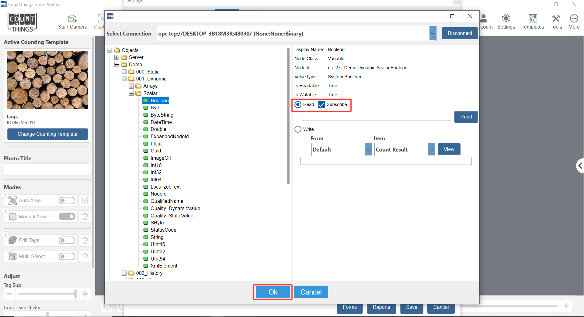 Count automatically using OPC server