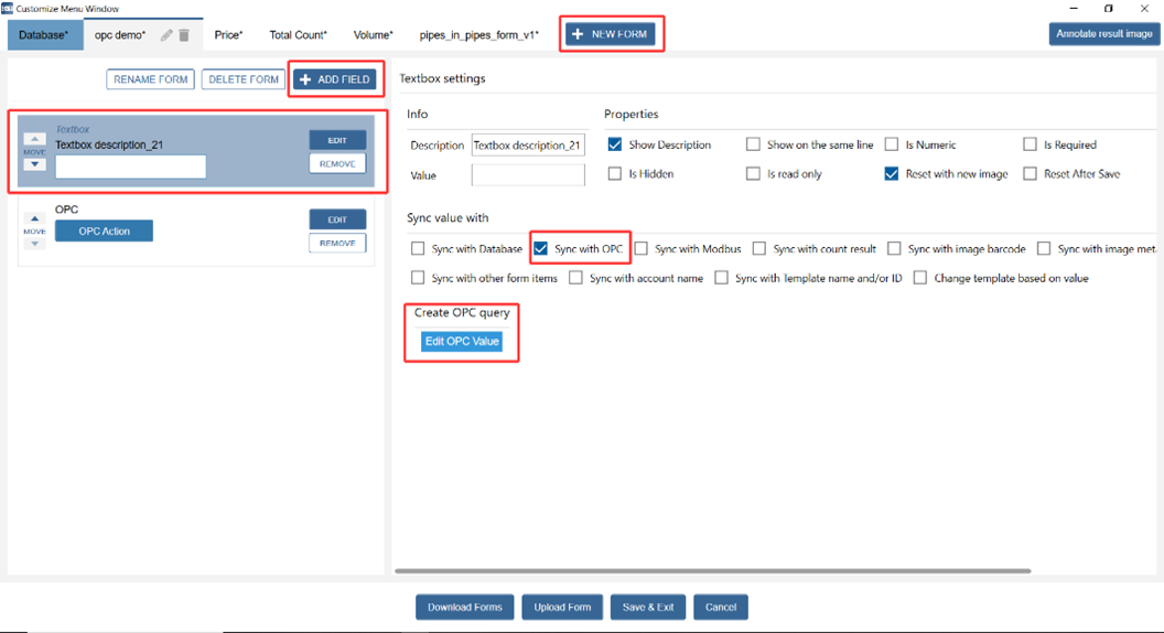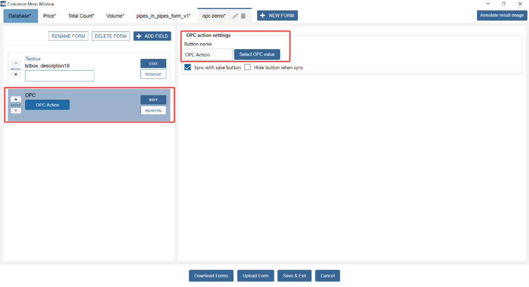 (both textbox field and OPC button must have the same settings in order to function).