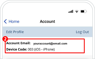 This guide provides steps to find your “Account Email” and “Device Code” on both iOS/Android devices (Part 1) and Windows computers (Part 2).