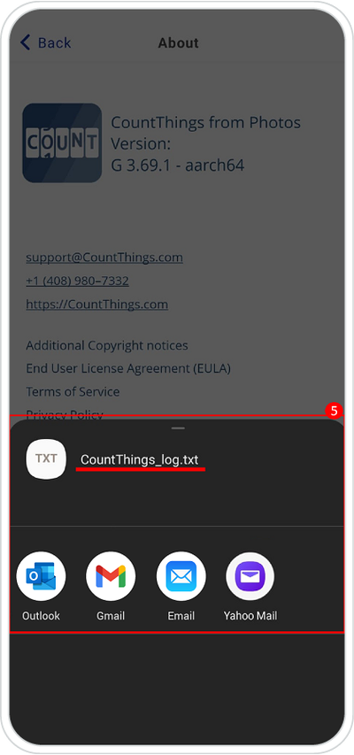 After running the tests, the methods to share the log will appear automatically. To receive support from our team, use the preferred email app and send the log to