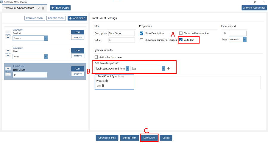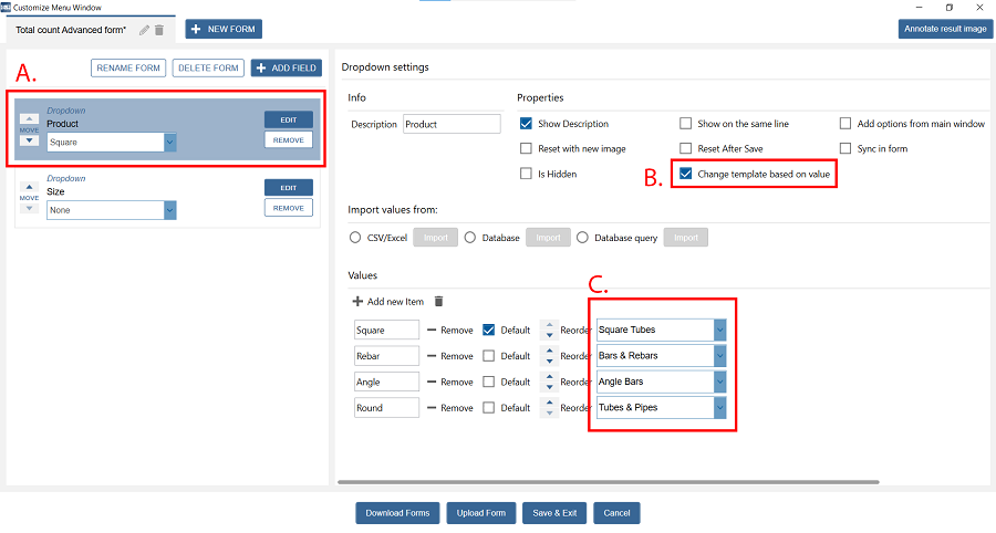 For a better understanding of the Total Count feature, we will take the following scenario as an example: It’s inventory day and your company has to count two types of products: Square (square tubes) and Round (pipes), having different sizes. We will export the results in a CSV file.