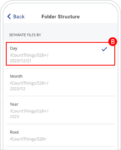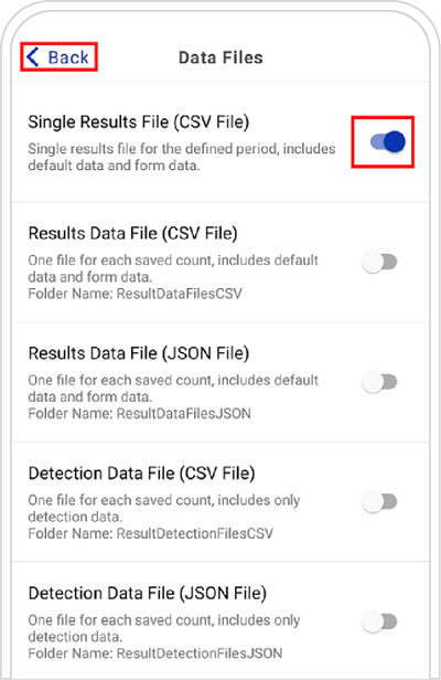 (e.g. we chose Single Result Format because we want to export only one csv file with all our results from a defined period, in our case from one day) ➜ tap