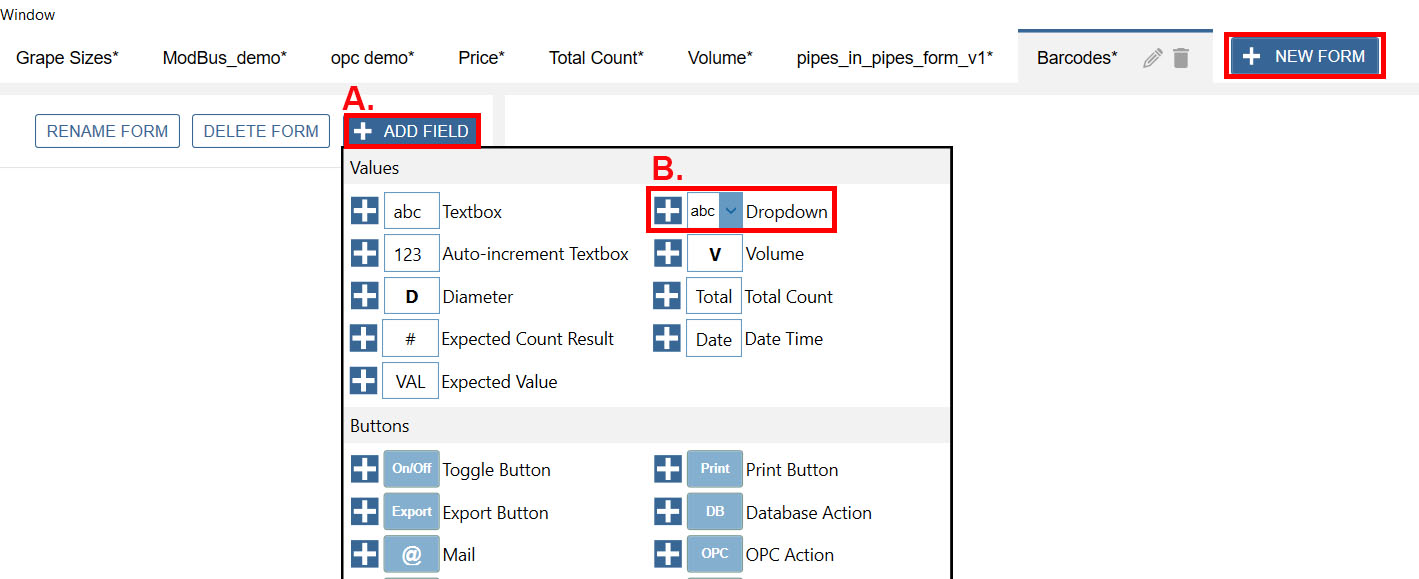 B. Form Values ➜ Add a Dropdown by clicking the “+”