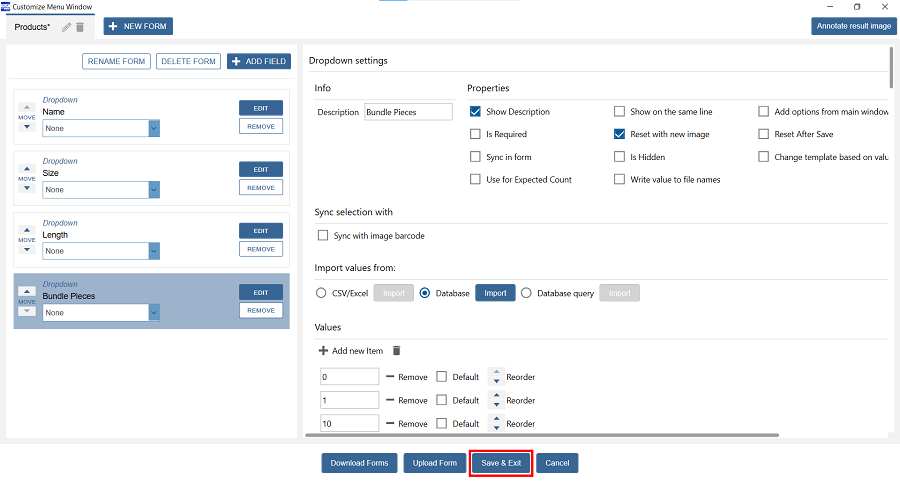 8. This is how our Customize Menu Window looks like for our Form example ➜ Click Save & Exit