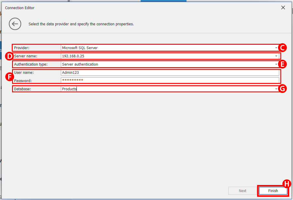 C. Select the Provider using the dropown (e.g. Microsoft SQL Server)