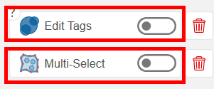 B. Multi-select: Switch on the toggle of Edit Tags/Markers and Multi-select to create an area that selects all the tags/markers inside it, by holding down the left mouse button. After the area is created, you can:
