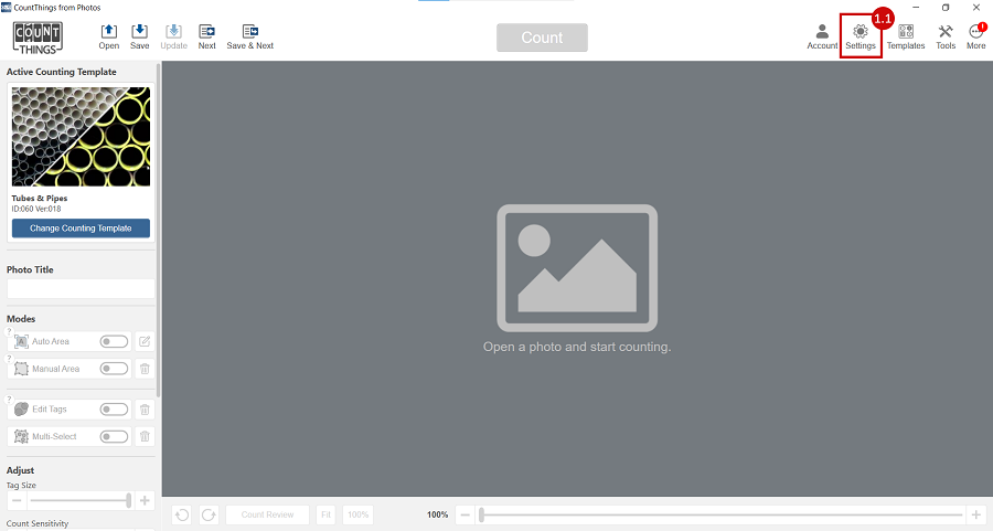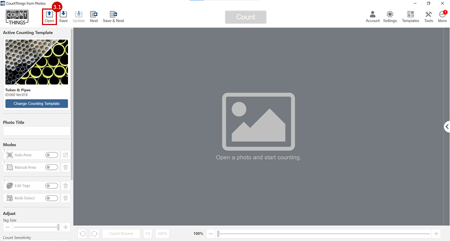 3.1 Open the photo you want to count from using the Open Icon.