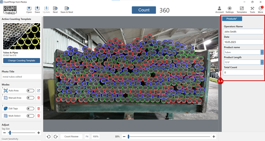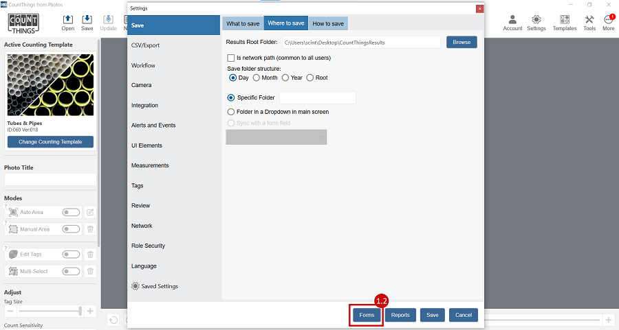 The Form feature allows you to capture data related to your counted objects and export the data to a CSV file.