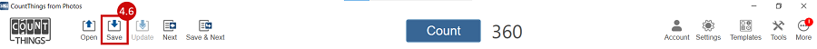4.6 Save your counting data by clicking Save icon (top left).