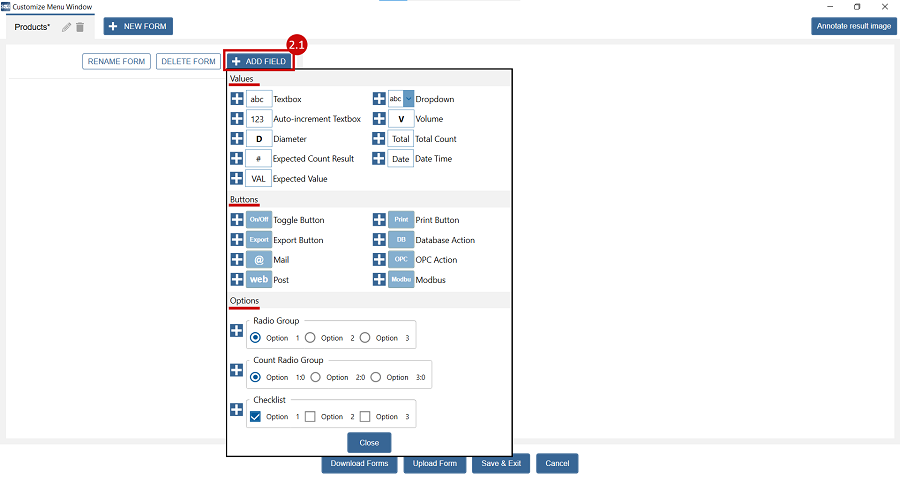 2.1 Click on +ADD FIELD button and add as many fields you need by clicking on symbol “+”.
