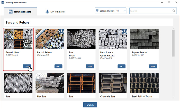 GET button. Click Done once you've selected all relevant Counting Templates.