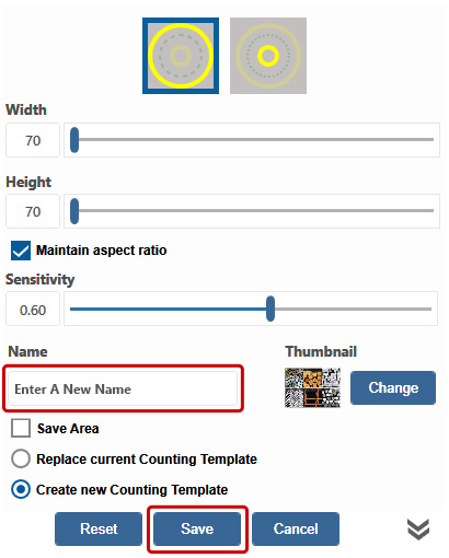 Name the newly created Counting Template and click Save to apply the changes.