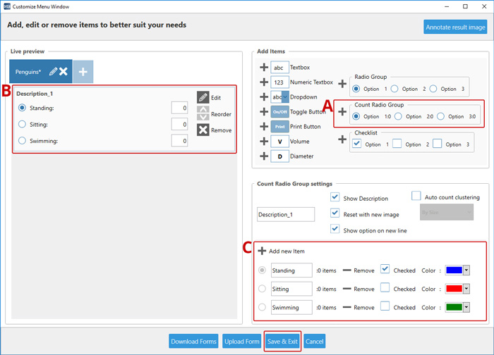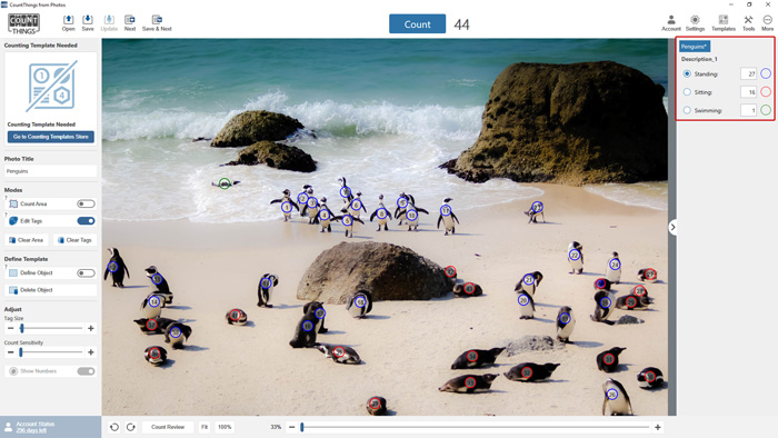 For automated counting to work, the software needs a Counting Template optimized to the type of things being counted.