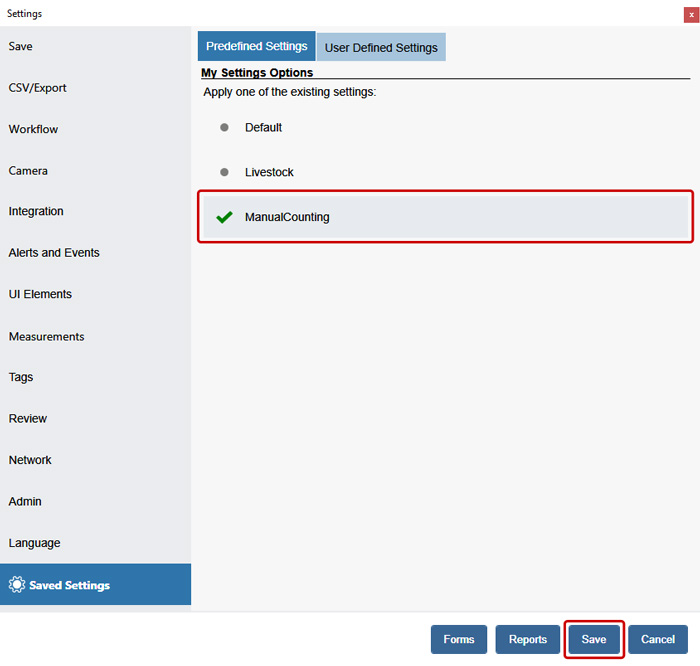 Saved Settings, and check the ManualCounting setting. Click Save.