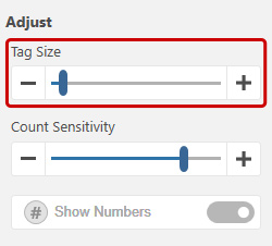 Tag Size option on the left, to decrease and/or increase tags' size.
