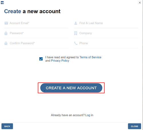 2. Fill in the form with the required information ➜ Check the mandatory field " I accept the Terms of Service".