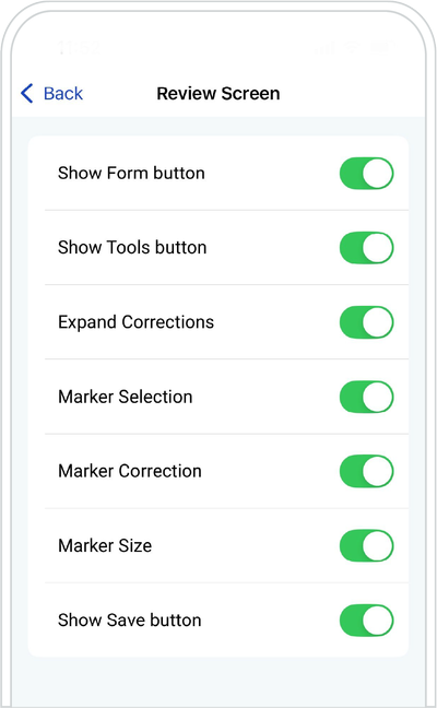 Marker Correction - Switch off this toggle if you want to hide the Marker Correction tools in Review Screen toolbar.