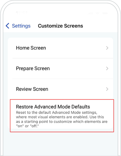 In Customize Your Screens, tap on Prepare Screen and you will see the following options: