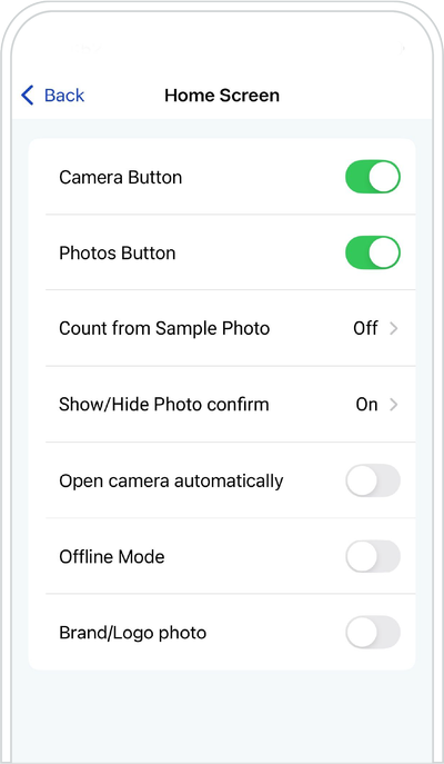 Show/Hide Photo confirm allows you to review photos you take before counting them.